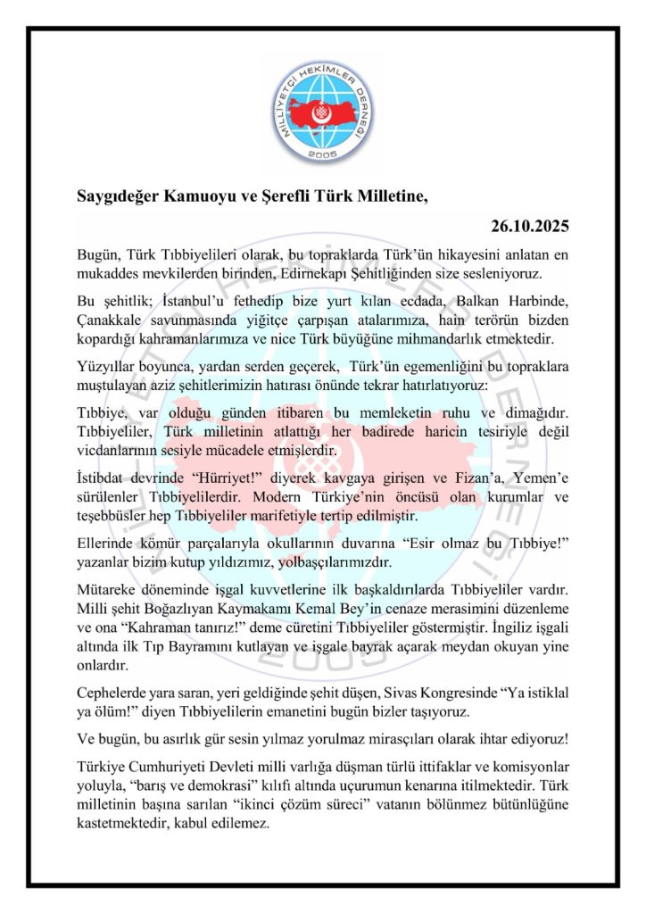 Bugün, Türk Tıbbiyelileri olarak, bu topraklarda Türk’ün hikayesini anlatan en mukaddes mevkilerden birinden, Edirnekapı Şehitliğinden size sesleniyoruz.