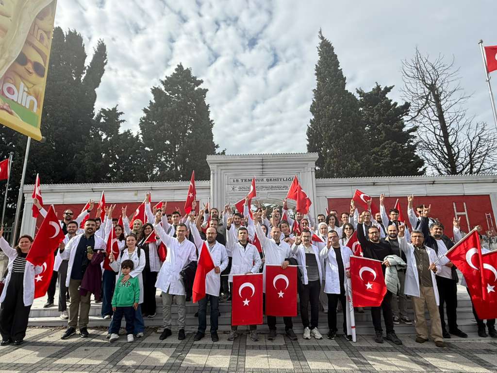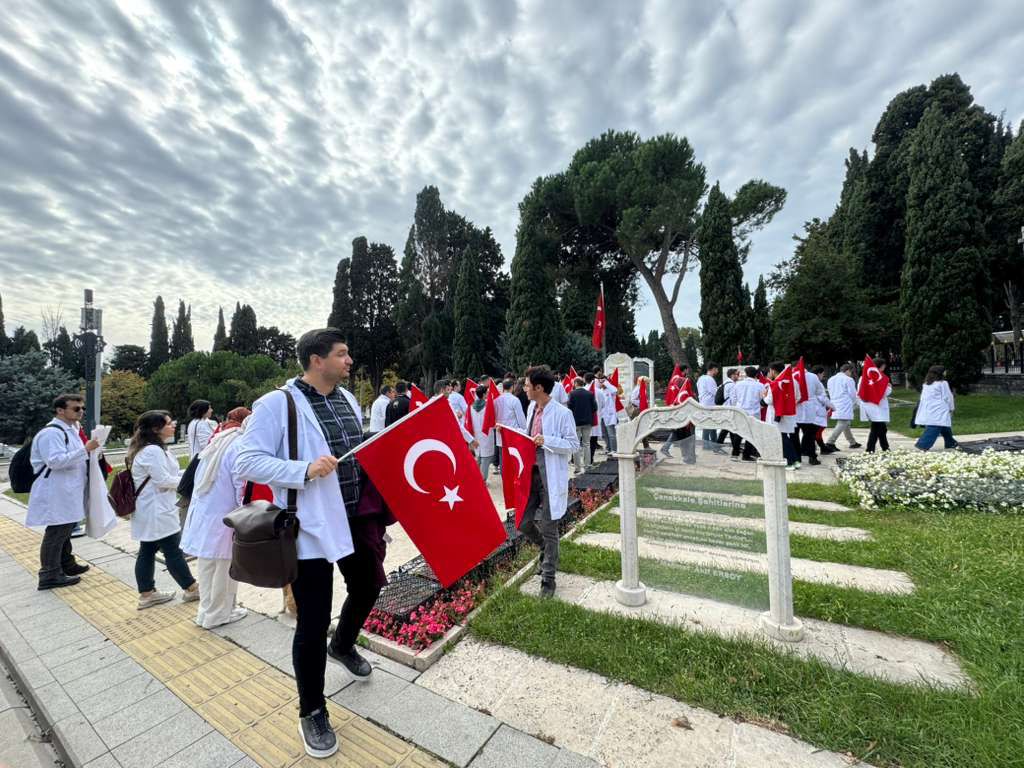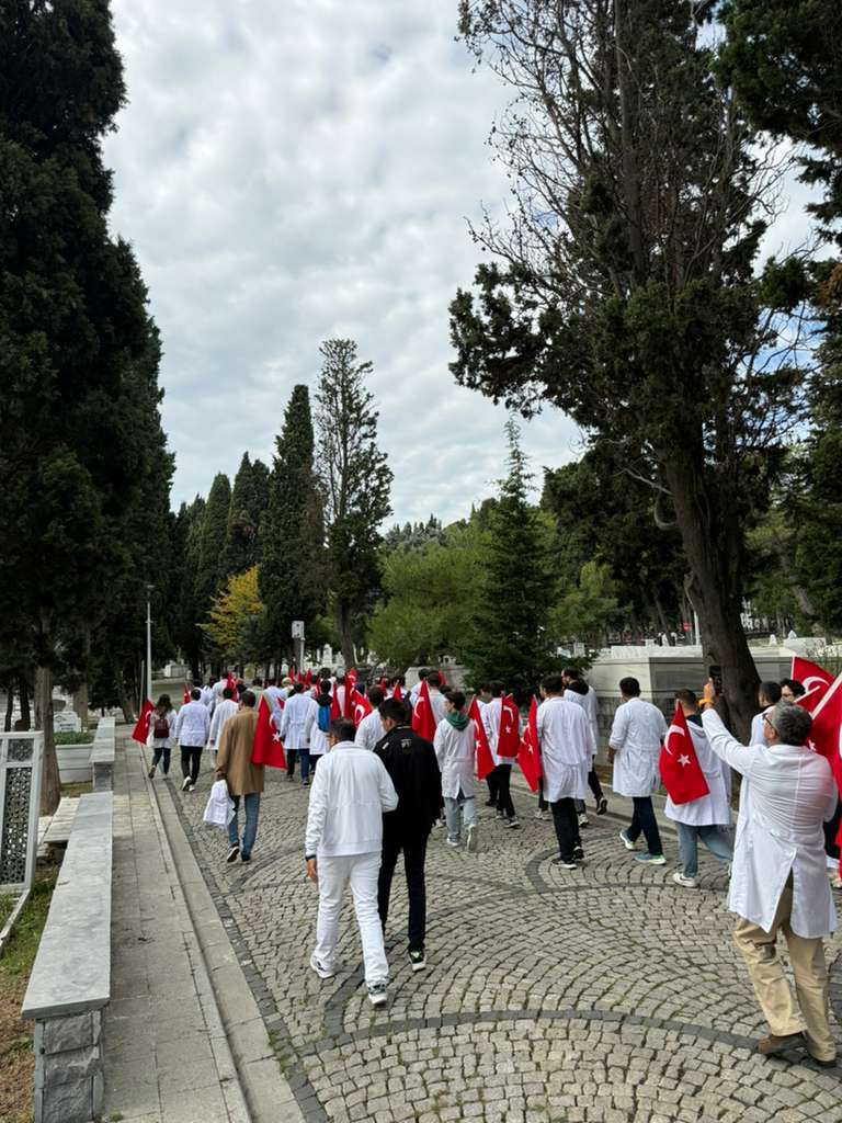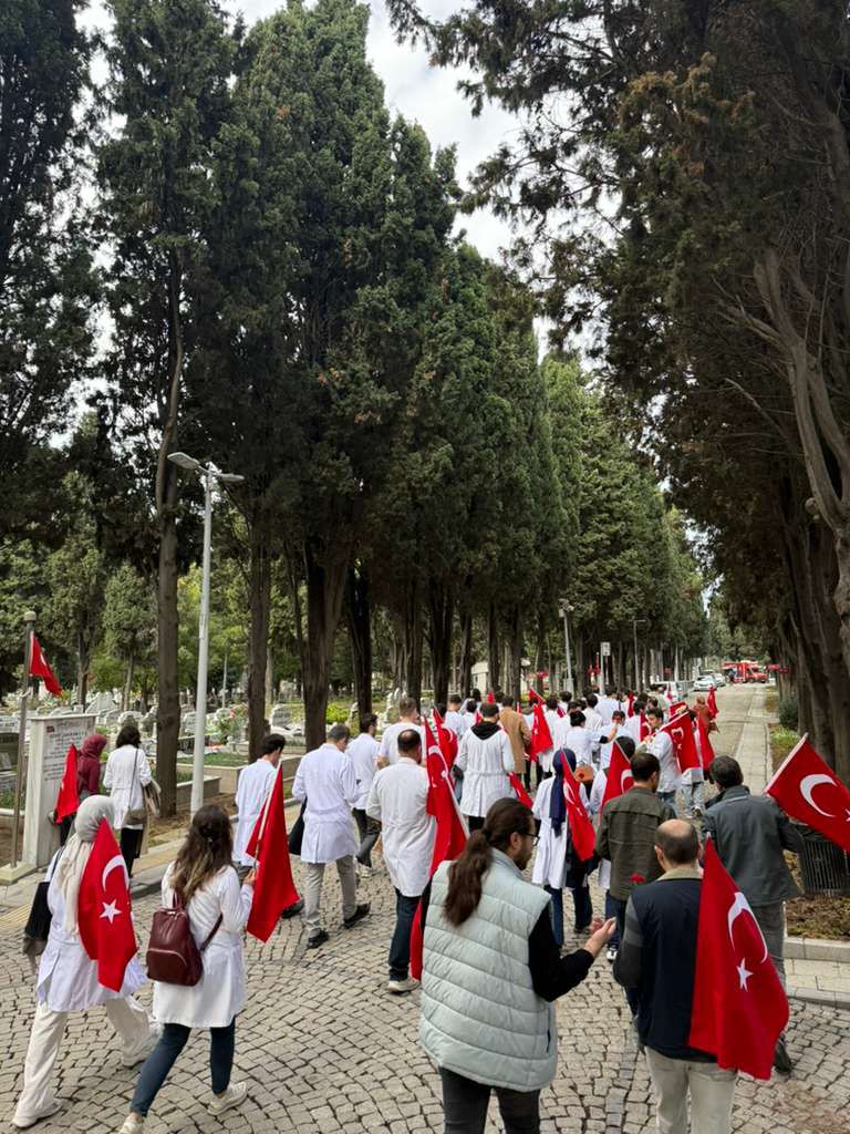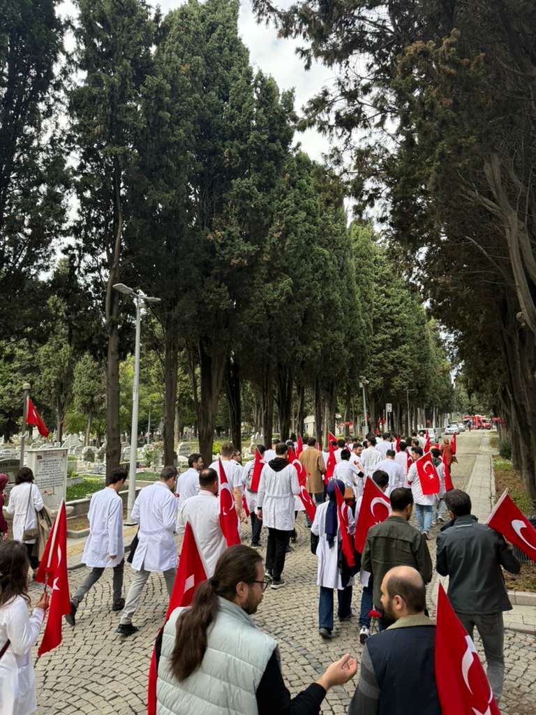 Ruz-ı mahşere kadar buradaki kabirlerinde istirahat edecek şehitlerimize Tıbbiyeliler olarak söz veriyoruz. Bu hayasızca akına gerekirse gövdemizi siper edecek, yine de “Dur!” diyeceğiz.